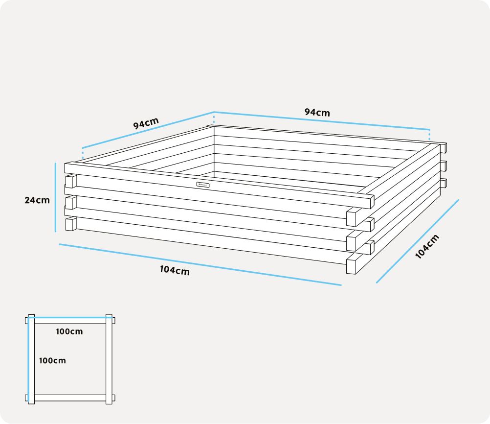 Höhe des Hochbeets: 24cm