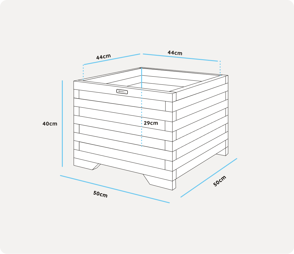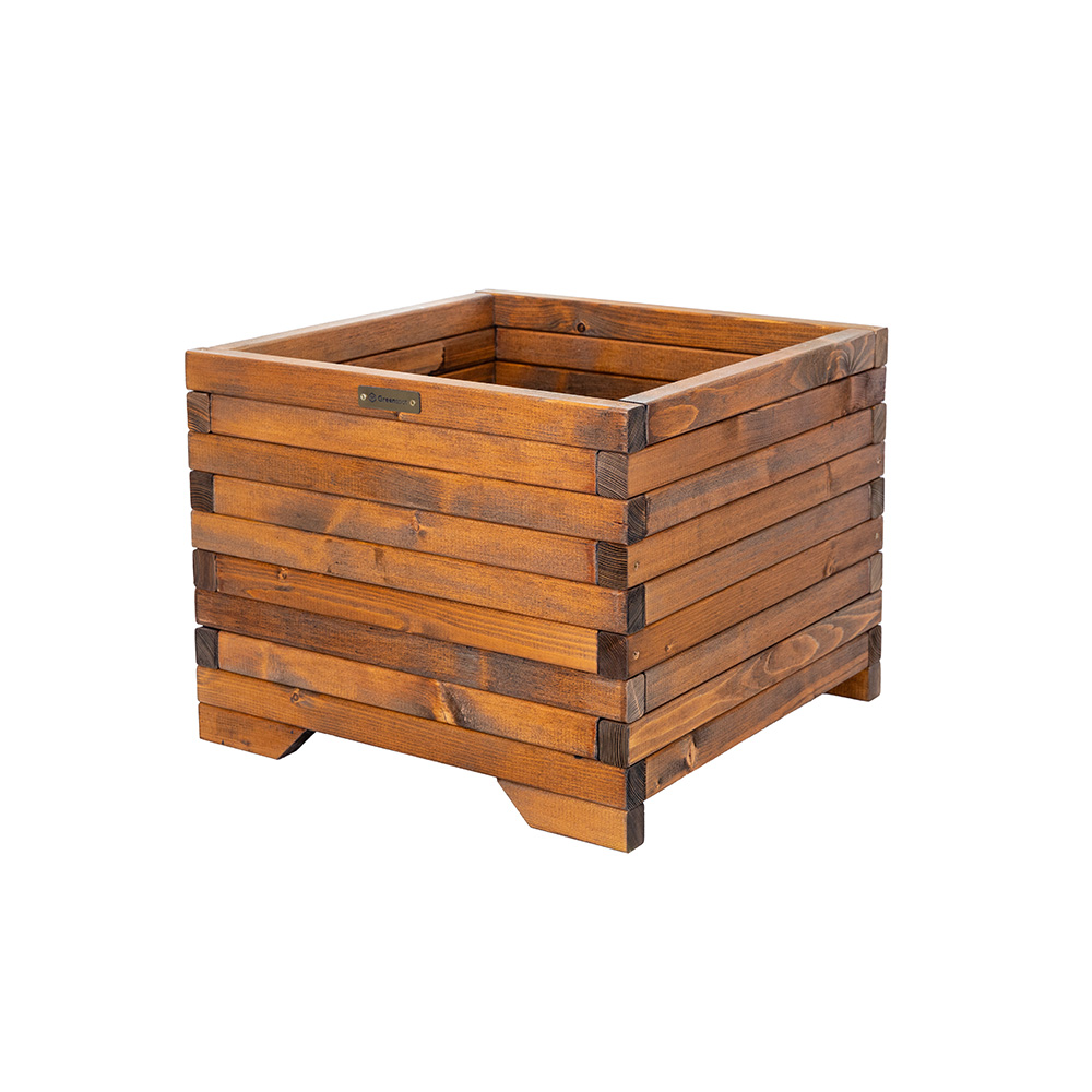 Um eine maximale Haltbarkeit zu gewährleisten, wurden alle Bestandteile des Topfes gründlich mit einem umweltfreundlichen, mit Harz angereicherten Präparat auf Wasserbasis imprägniert. Diese Lösung schützt das Holz bis zu mehreren Jahren vor Feuchtigkeit, UV-Strahlen und anderen Witterungseinflüssen. Die Imprägnierung ist für Pflanzen völlig unbedenklich, so dass Sie bedenkenlos Kräuter, Gemüse oder Zierblumen darin pflanzen können.