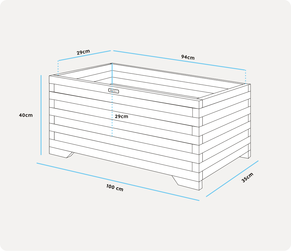Jedes Element des Topfes wurde in eine umweltfreundliche Imprägnierung auf Wasserbasis mit Harz getaucht. Dadurch ist das Holz bis zu 5 Jahre lang vor Feuchtigkeit, UV-Strahlung und anderen Witterungseinflüssen geschützt. Die Imprägnierung ist pflanzenverträglich, so dass Sie Gemüse, Kräuter oder Obst anbauen können, ohne sich Gedanken über deren Qualität zu machen.