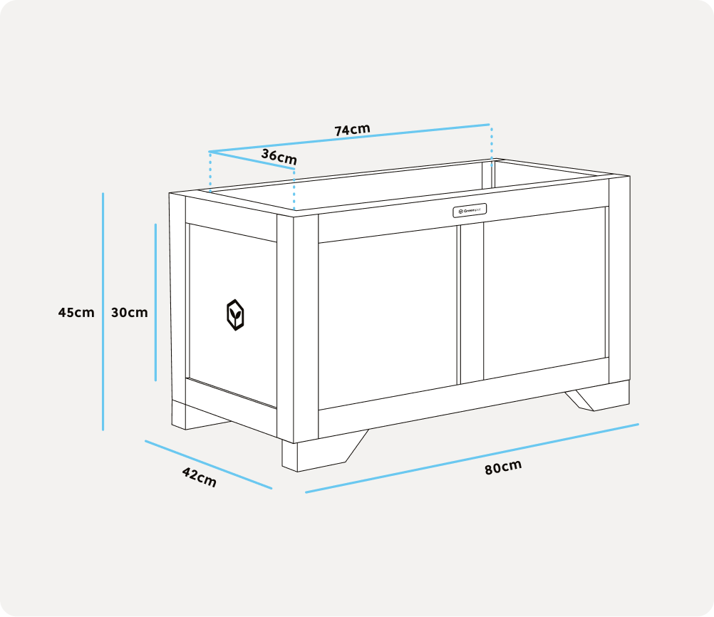Inhalt der Packung: Topf, Anleitung, Satz Holzschrauben, Stifte, Agrotextil.